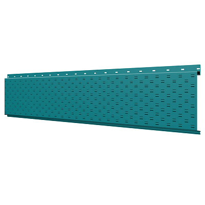 Линеарная потолочно-стеновая панель с ПЕРФОРАЦИЕЙ для вентиляции цвет RAL5021 Морская Волна применяется в качестве софитов для подшивы крыши, наружной и внутренней отделки потолков, стен, фронтонов фасада дома в Рудном.