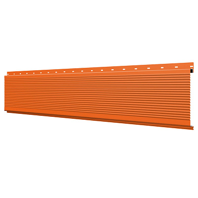 Линеарная потолочно-стеновая панель РИФЛЕНАЯ усиленная цвет RAL2004 Оранжевый Апельсин применяется в качестве софитов для подшивы крыши, наружной и внутренней отделки потолков, стен, фронтонов фасада дома в Рудном.